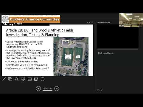 Finance Committee $5 Million CPA Balance Prompts Scrutiny Amid $90,860 Athletic Field Study Approval February 5, 2026